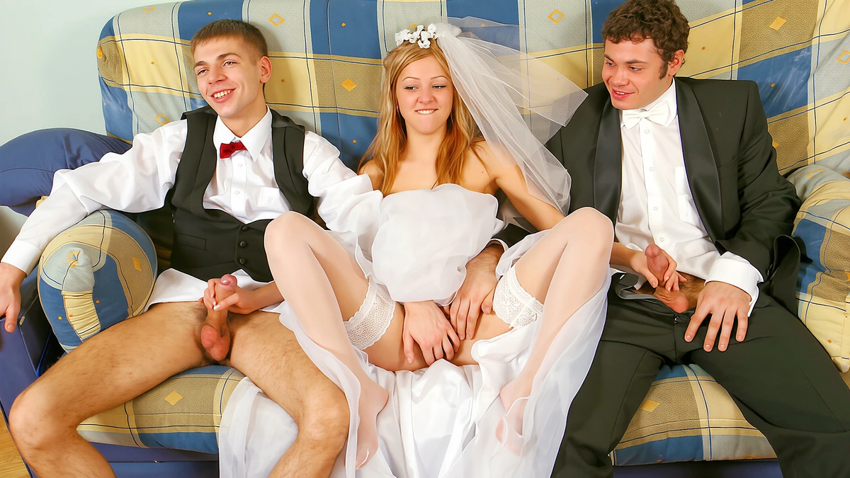 You never know what is going to happen after a wedding and when Alena’s older sister ties the knot it turns this barely legal girl into a cock craving slut! And when one of the groomsmen felt her grinding on him during the dance he decided right then that it was time to play. But not before he had told another groomsman to wait a few minutes and then go to the back of where the reception was. Sonia is lead back there and she is very eager to start fucking around but when the second guy shows up and she is sat beside him she starts to get nervous. But before you know it both guys are all over her tight teen body and they end the festivities by blowing their cum in her cute mouth and all over her pretty teen face.